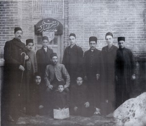 نمایی از مدرسه ی شرافت | از چپ به راست: میرزا شفیع صدر ، مستوفی،میرزابخشعلی،میرزامسعود در اواخر دوره قاجار
